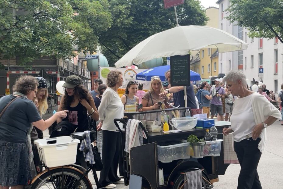 „Bar jeden Mitgefühls“ steht auf dem Schild einer mobilen Fahrradbar, die auf einem belebten Platz in München aufgebaut wurde. In dem doppeldeutigen Namen „Bar jeden Mitgefühls“ steckt die Beobachtung, dass Mitgefühl in unserer Gesellschaft im Schwinden ist. Ein kleines Theater will mit dieser „Bar jeden Mitgefühls“ auf ihr gleichnamiges Theaterstück aufmerksam machen und gleichzeitig die Menschen mitten in der Stadt miteinander ins Gespräch bringen: Was geschieht, wenn Mitgefühl aus unserer Gesellschaft verschwindet?