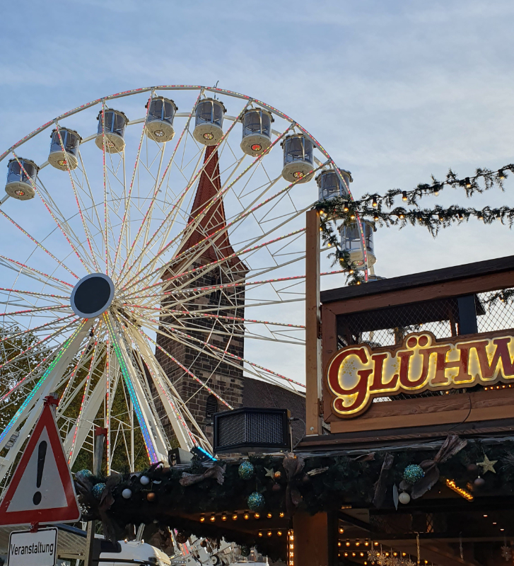 Ja, der Heilige Abend kommt in Sichtweite, wie die Kirche auf dem Bild hinter dem Adventsrummel. Nun liegt es an uns, den Rummel nach und nach herunterzufahren, das Riesenrad der Zeit vielleicht auch mal ganz zum Stillstand zu bringen – damit wir IHN empfangen können, den kommenden Herrn Jesus Christus.
